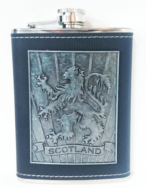 8oz Metal Hip Flask with Embossed Rampant Lion Design