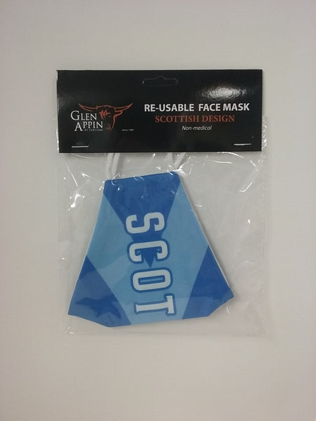 Re-usable Face Mask. Polyester outer & 100% Cotton lining. One-size with elastic ear loops. Designed for comfort.