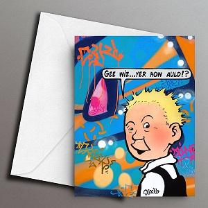 - Artwork features Oor Wullie saying ‘Gee wiz…yer how auld!?’. Making this card perfect for a special someone’s birthday!