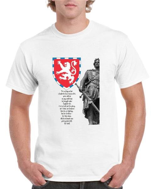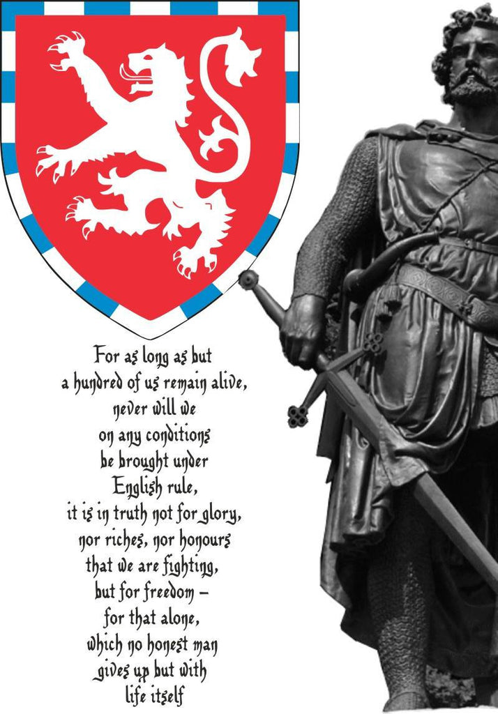 William Wallace statue in Aberdeen with the most well known paragraph from the Declaration of Arbroath.
